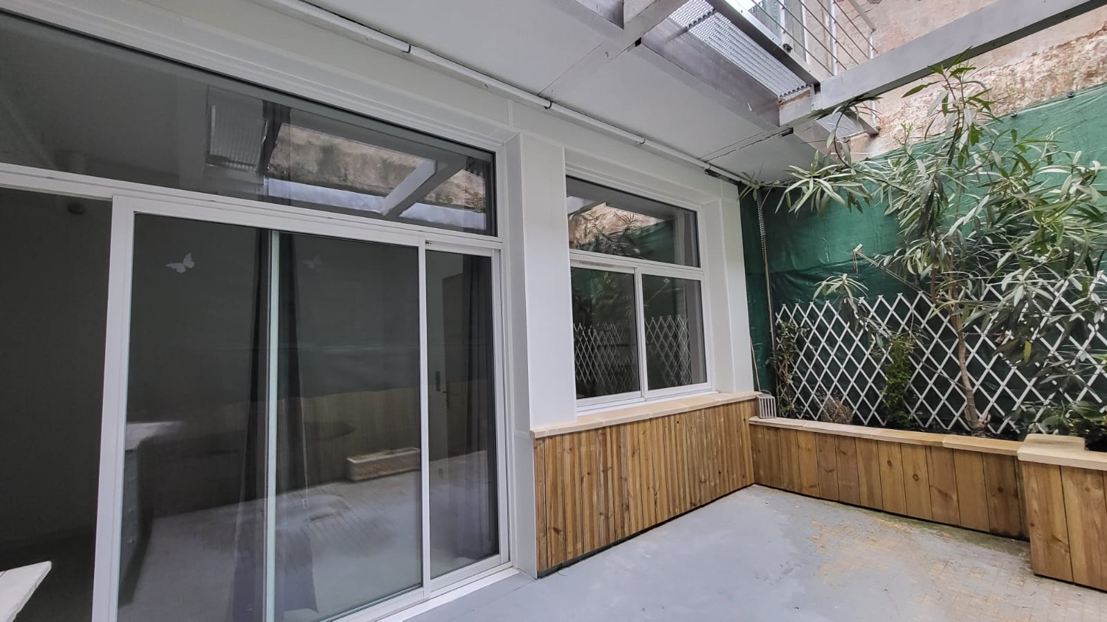 Appartement en rez-de-chaussée, refait à neuf comprenant entrée sur cuisine équipée, salle de bains avec placard, salon - salle à manger, une chambre et une cour extérieure arborée.