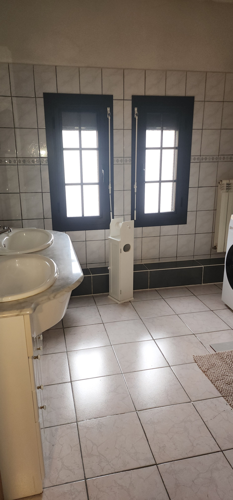 A l'étage : 2 chambres avec parquet au sol et placards encastrés, salle d'eau avec meuble double vasque et avec wc