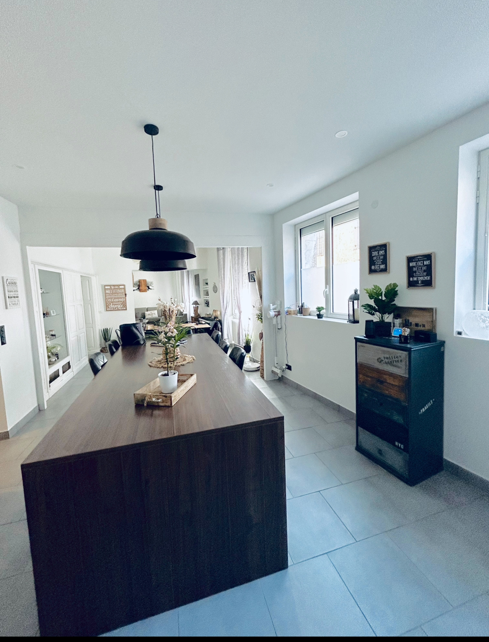 Elle vous offre un hall d'entrée, desservant cuisine équipée ouverte sur séjour / salle à manger, dégagement donnant sur trois chambres, salle d'eau avec w.c, buanderie, chaufferie avec pompe à chaleur, remise et cave d'environ 30 m².