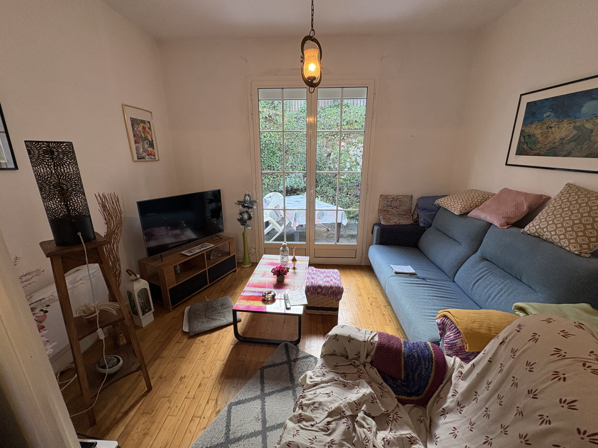 Un salon/séjour lumineux d’environ 22 m²