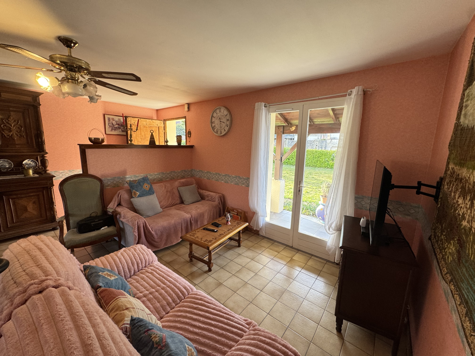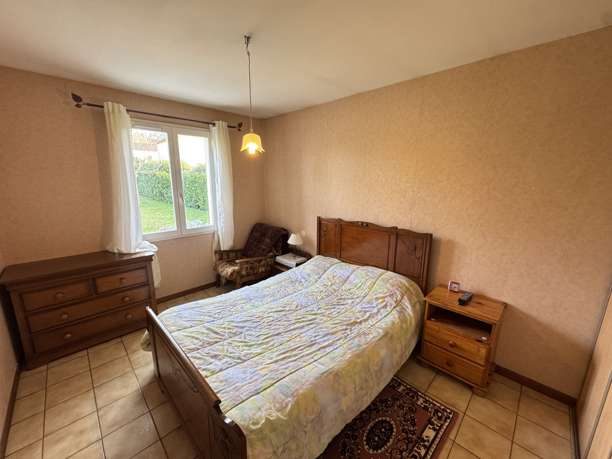 Profitez d’un intérieur lumineux avec trois chambres, une cuisine, une grande pièce de vie lumineuse, une salle de bain, et une terrasse couverte de 12 m² donnant sur un jardin de 1760 m² avec un garage fermé communiquant.