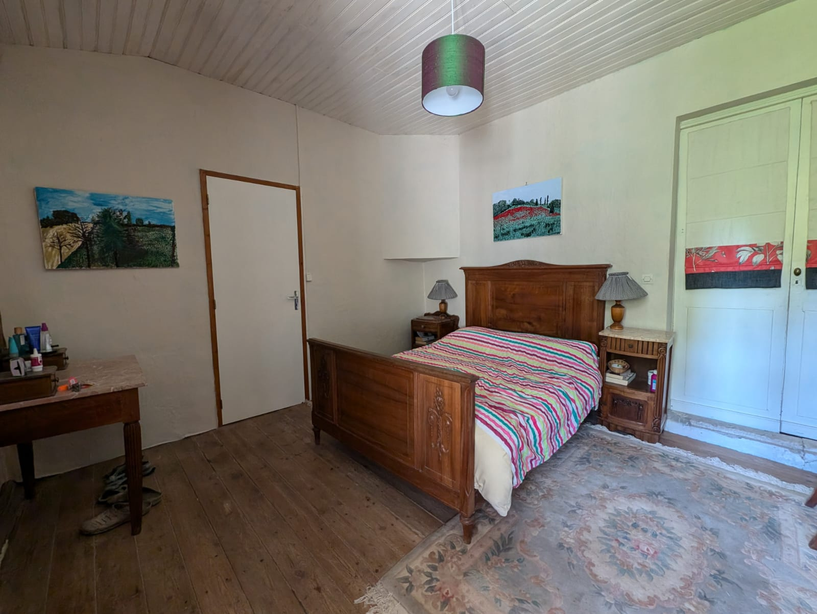 Deux chambres confortables, dont l'une dispose d'une salle d'eau et de WC privatifs, vous offriront un accès direct au jardin et une vue apaisante sur les champs environnants.
