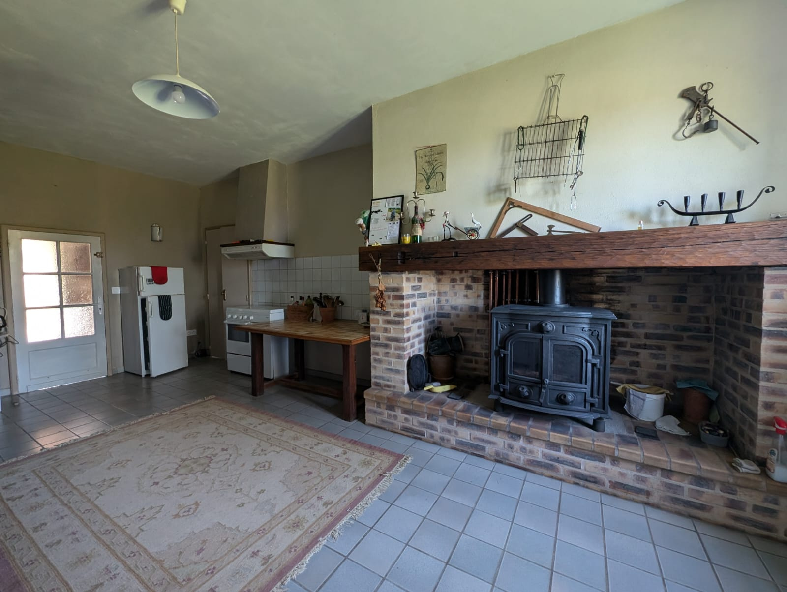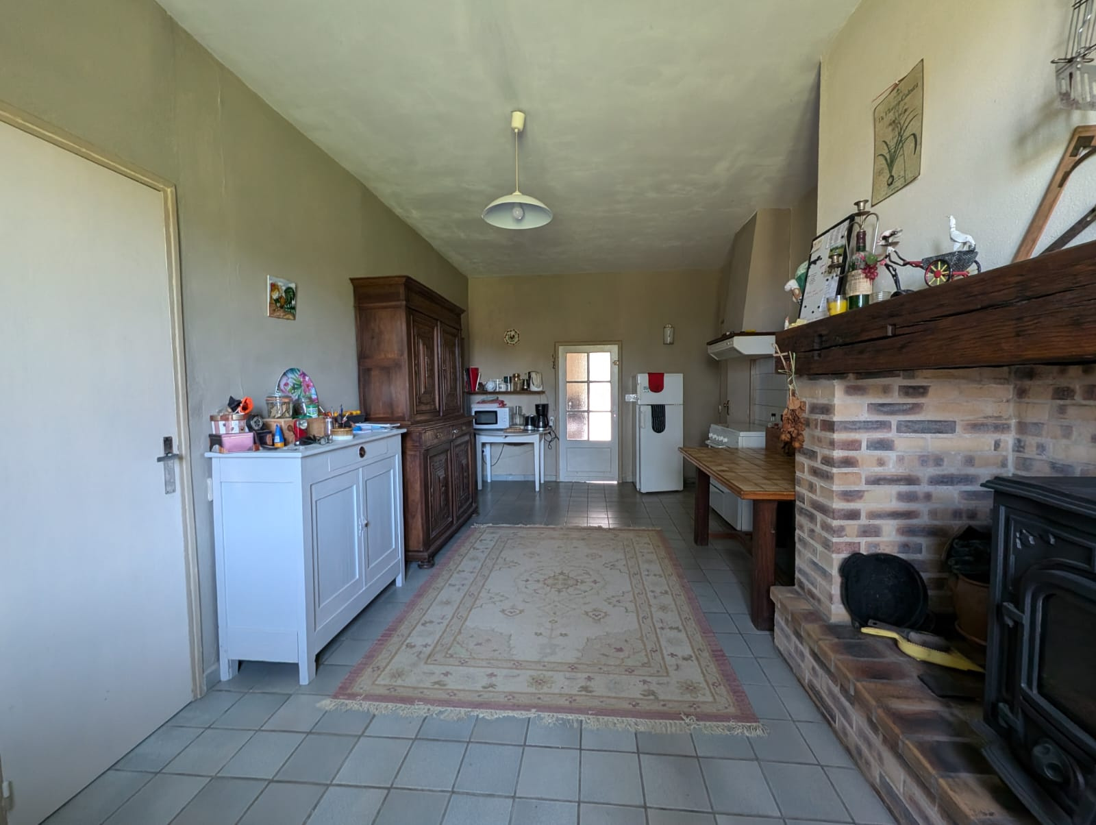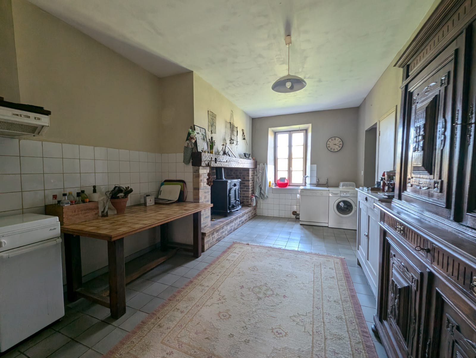 Dès votre entrée, vous serez accueilli par un hall spacieux, suivi d'une cuisine généreuse équipée d'un poêle à bois, idéale pour des moments conviviaux en famille ou entre amis.