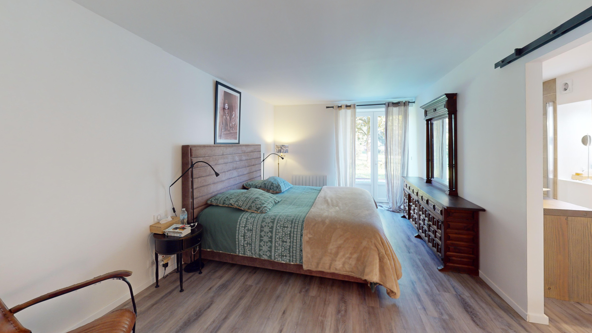 Dans le prolongement de la maison principale, cet espace entièrement rénové séduit par son caractère et son atmosphère chaleureuse. Il comprend un vaste salon-séjour avec cheminée, une superbe cuisine équipée ouverte sur une terrasse avec vue sur la piscine et le parc, ainsi qu’une grande mezzanine offrant un cadre de vie atypique et convivial.